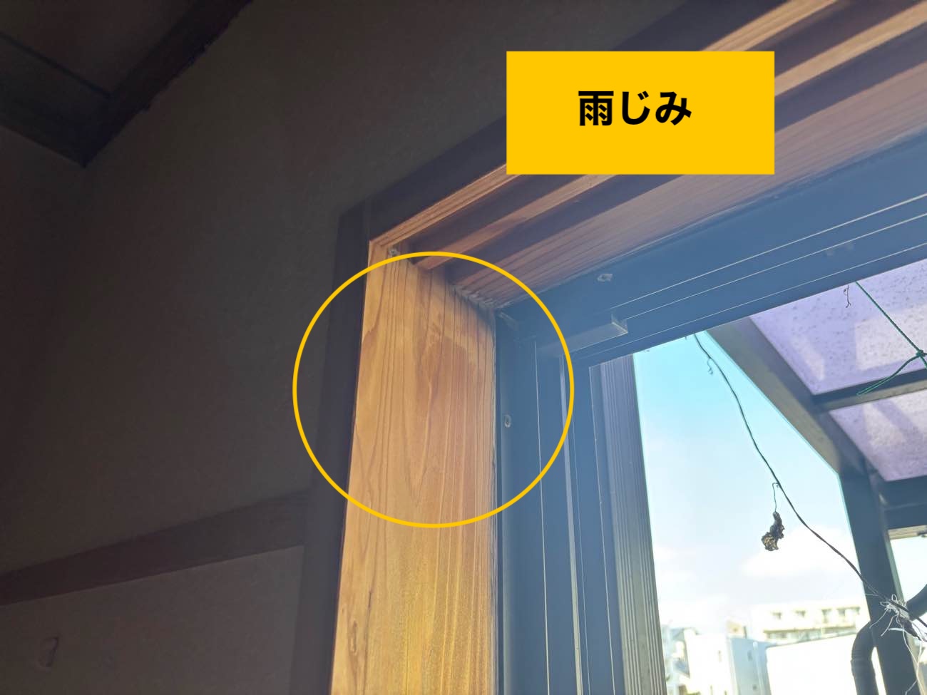 前回の業者は、雨が漏れている窓枠の外側だけを固めていました。