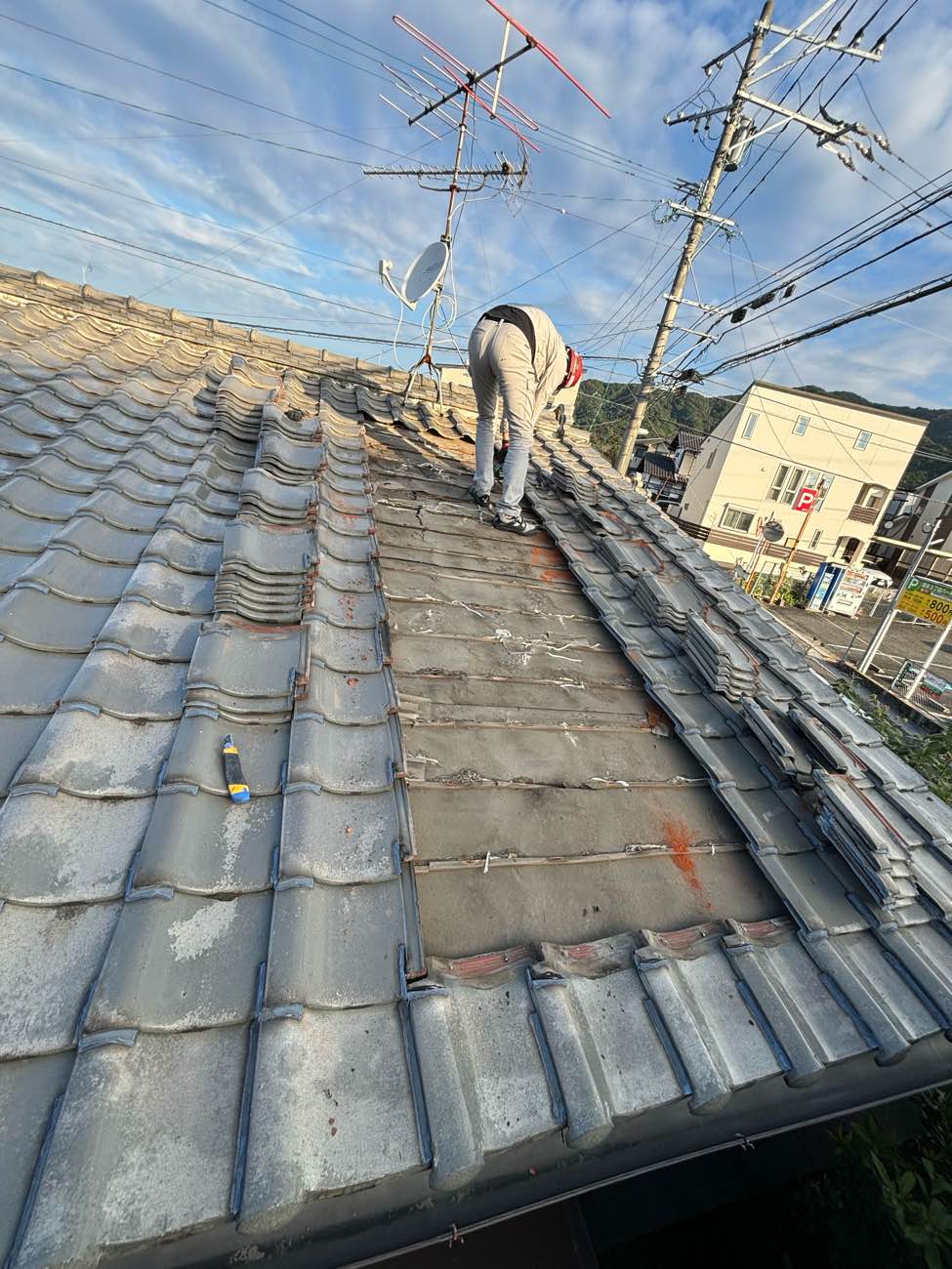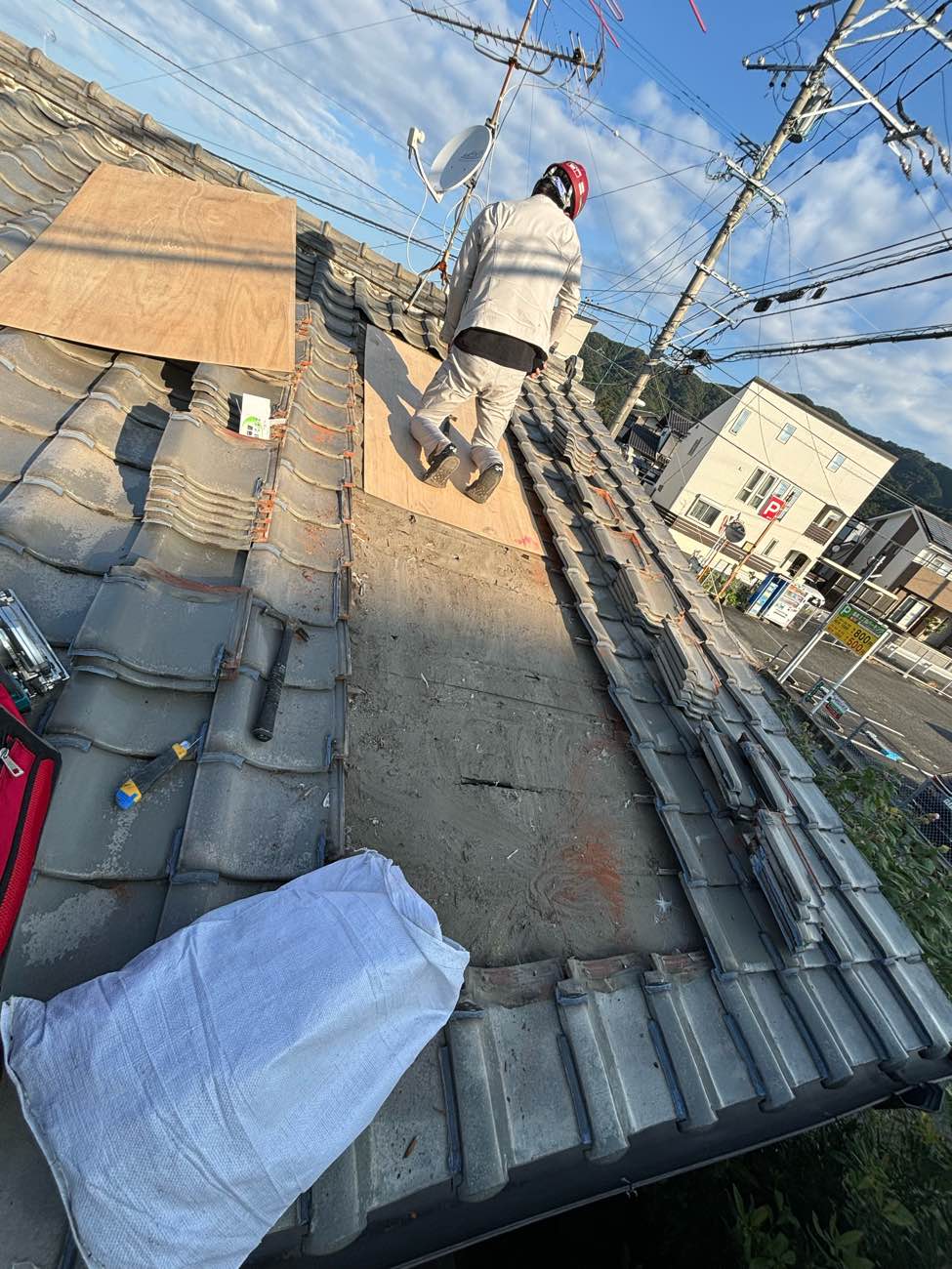 既存の瓦と下地をすべて撤去し、新しい防水シートと屋根材(瓦または軽量屋根材)に交換する工事です。防水性が完全に回復し、建物の耐震性向上にもつながります。