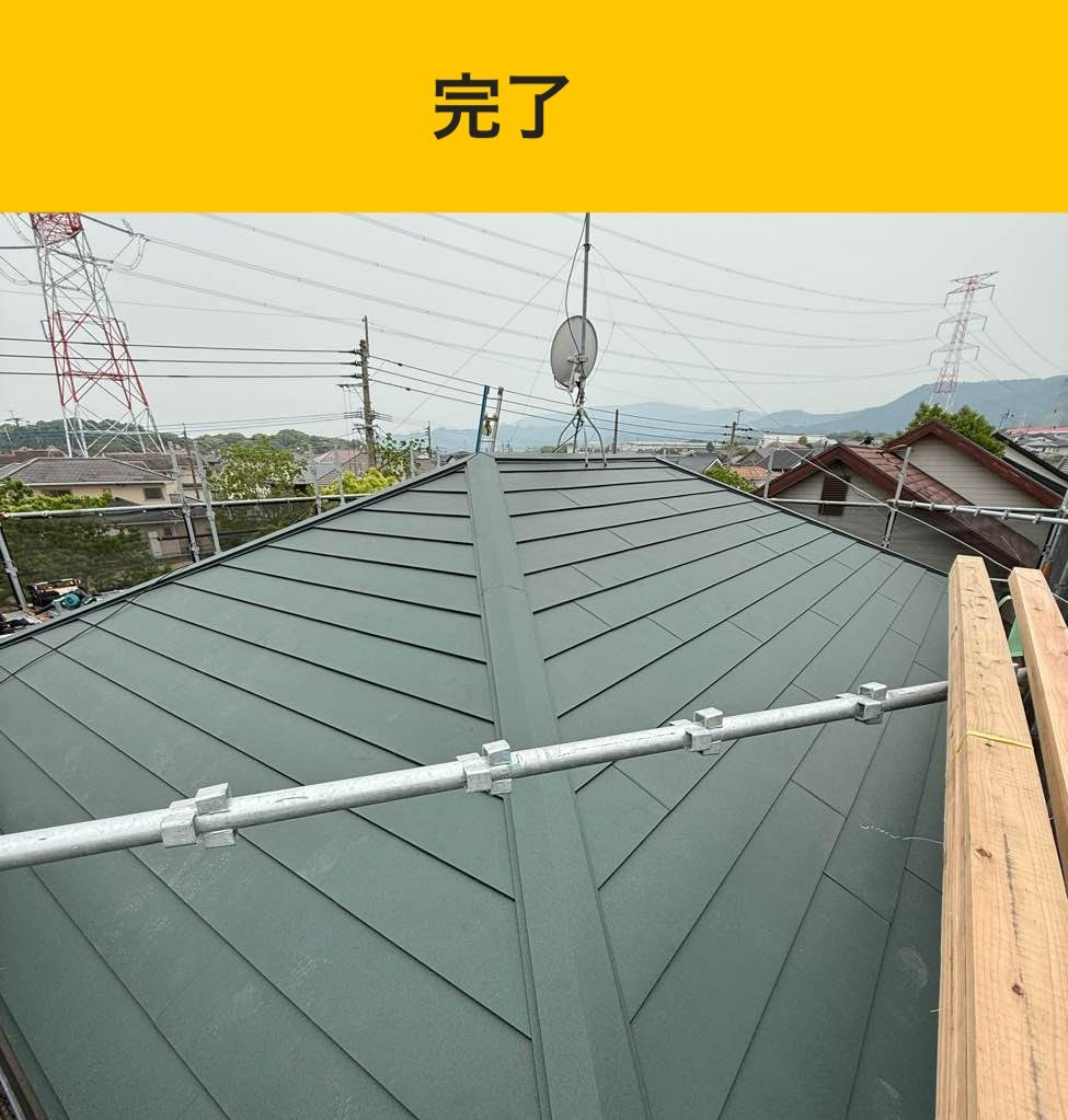 色褪せ、苔がむし、いつ雨漏りしてもおかしくなかった不安な屋根。After